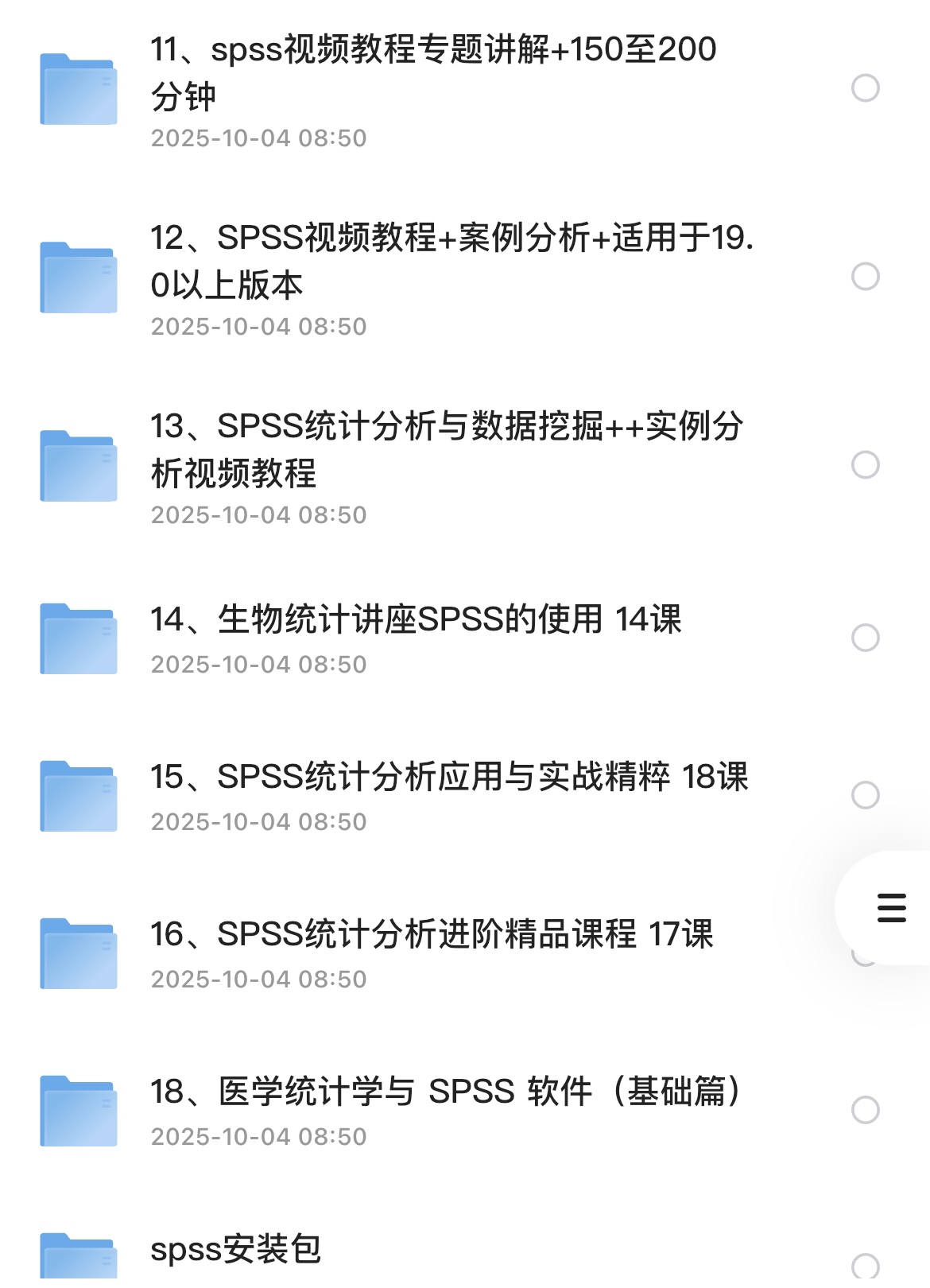 先说说这份资料有多顶✅ 光是教程文件夹就分了十多类,覆盖基础+中级+进阶全阶段:大经济论坛的SPSS基础+中级PPT课件,把界面操作、数据录入讲得明明白白;经典讲解+案例分析的视频教程分八大板块,搭配1500+实例,跟着操作就能学会;还有中国医科大学、生物统计专属讲座,医学/生物专业的宝子直接精准适配,不用再找通用教程硬套。
